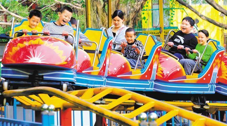 南宁市人民公园游乐场,紧张刺激的过山车让孩子们开心不已。宋延康摄 (中经视觉)