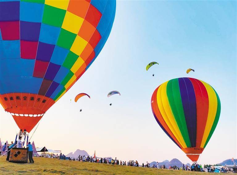 南宁市大明山滑翔伞露营基地,游客乘坐热气球鸟瞰美景。江威颖摄 (中经视觉)