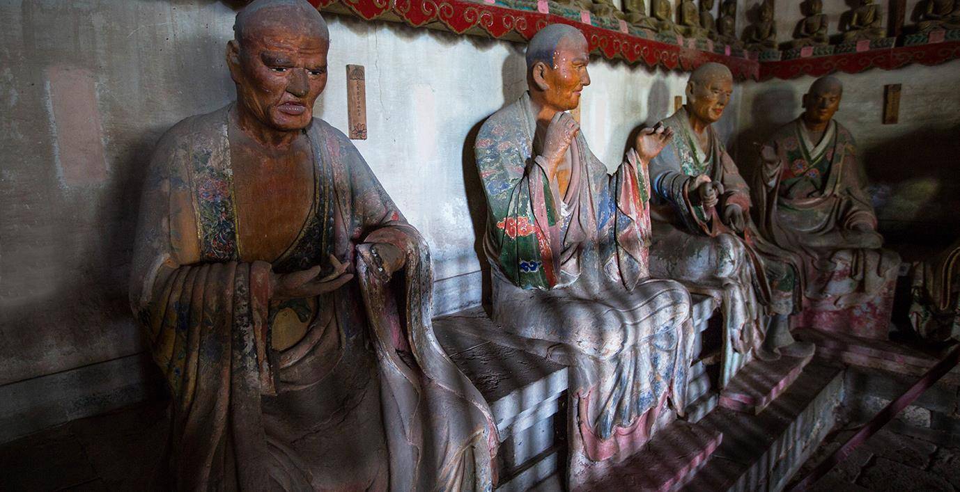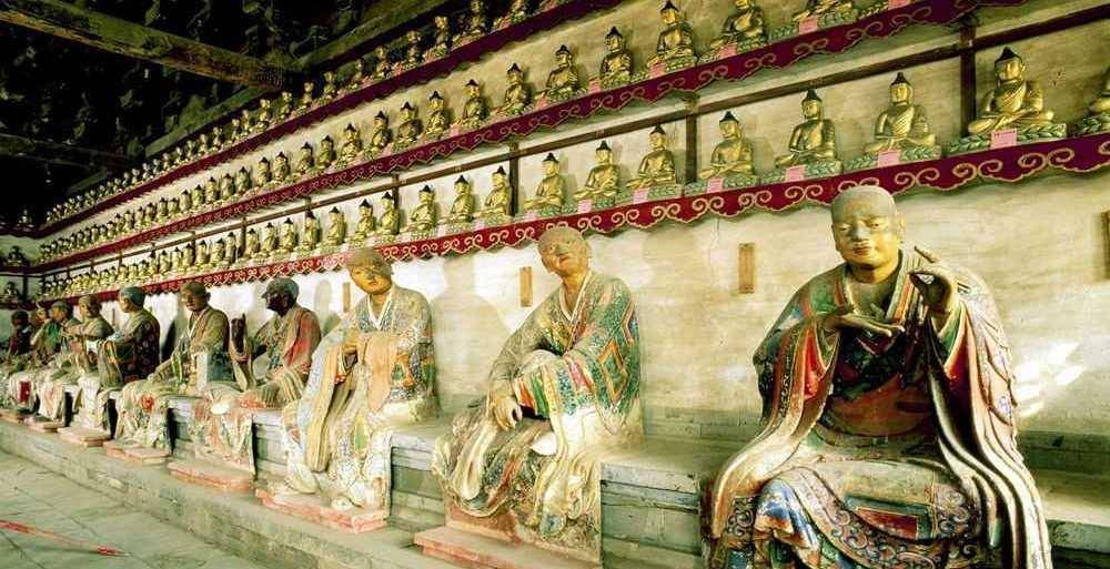 而广受游客好评的则是这里的彩塑罗汉像,其一共有40多尊,形态各异,动作不一,十分生动形象,在他们背后墙面上也罗列着小佛像,极具艺术感染力,“天下罗汉两堂半”当中,其中的一堂罗汉就指的是这个,如果人们仔细观察这些佛像的面部表情和穿着,就会发现它们没有一个是重复的,打造的非常精妙绝伦,其更被梁启超称为“海内第一名塑”。