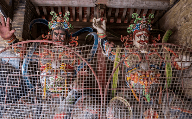 除此之外,桥楼殿高两层,明柱,红墙,琉璃瓦,高高的脊梁上游龙呈腾飞,壮观程度让人肃然起敬,不由心生尊敬之情!虽然整个殿宇整体看起来保存得相当完好,但你需要知道的是,屋内的壁画和苏式彩绘有很大一部分已经模糊不清的,天花牌也有了80%的残缺,这也是这座殿宇中为数不多能证明岁月的痕迹的东西了!