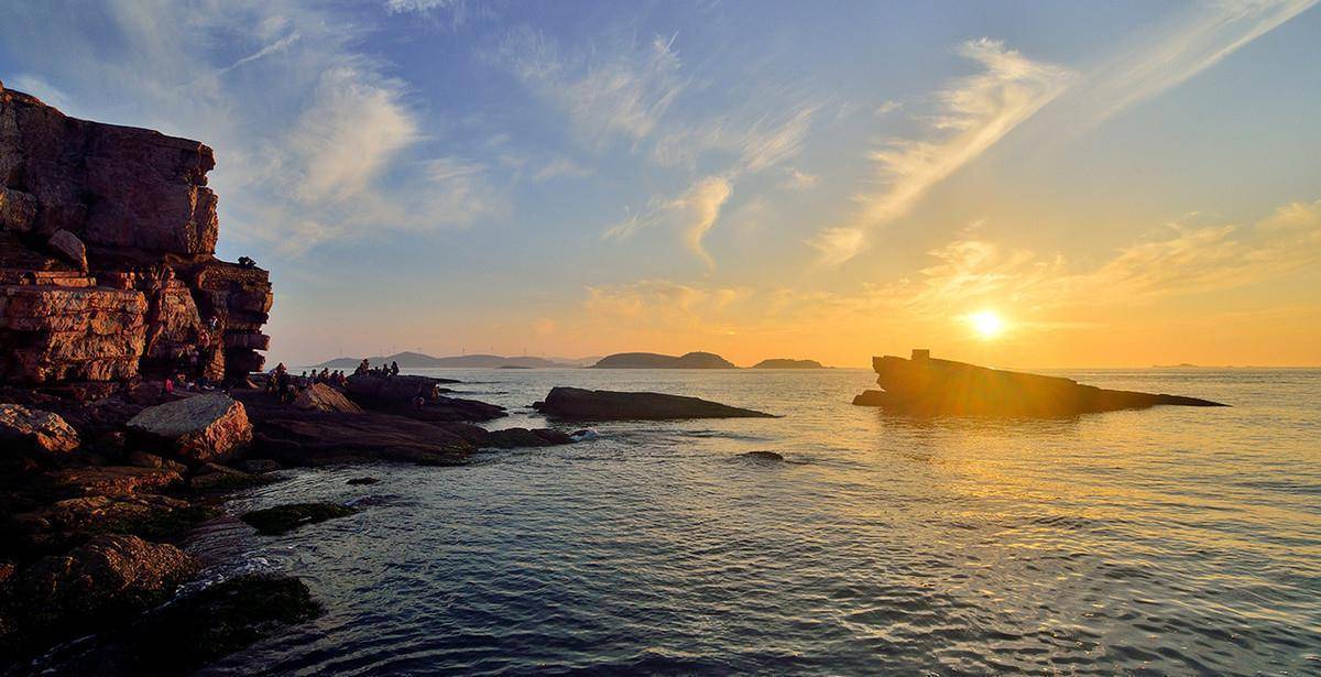 长岛分为南岛与北岛,在北长岛的西北角有一处小众且惊艳的景点,名为九丈崖景区,是摄影圈中的拍摄海上日出的天堂之地。九丈崖因为崖壁的高、险、峻而得名,面积并不大,约3000平方米。其名字由来现在已无从可证,但根据我国早年的计量单位,一丈约等于3米,九丈大概为30米,与九丈崖的高度、宽度大为不符,又或许“九”在古代形容无限的意思,因而被称为“九丈崖”。