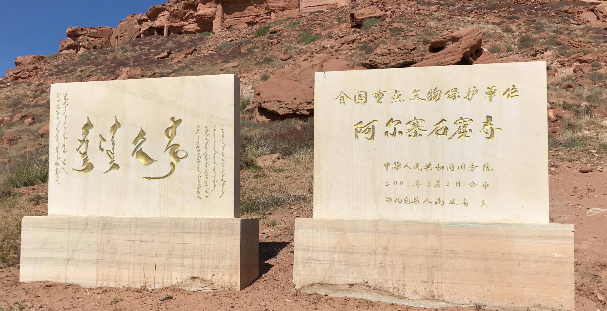 在阿尔寨山上可以看见大小不一的石窟,这是长城以北的草原地区仅存的晚期佛教石窟遗迹,石窟依附山体进行开凿,名为阿尔寨石窟,最早开凿于北魏中期,在西夏、元代时进入鼎盛阶段,约80米高,东西长约400多米,向南北两侧延伸,约200米宽,是内蒙古省内发现的规模最大的石窟寺建筑。*