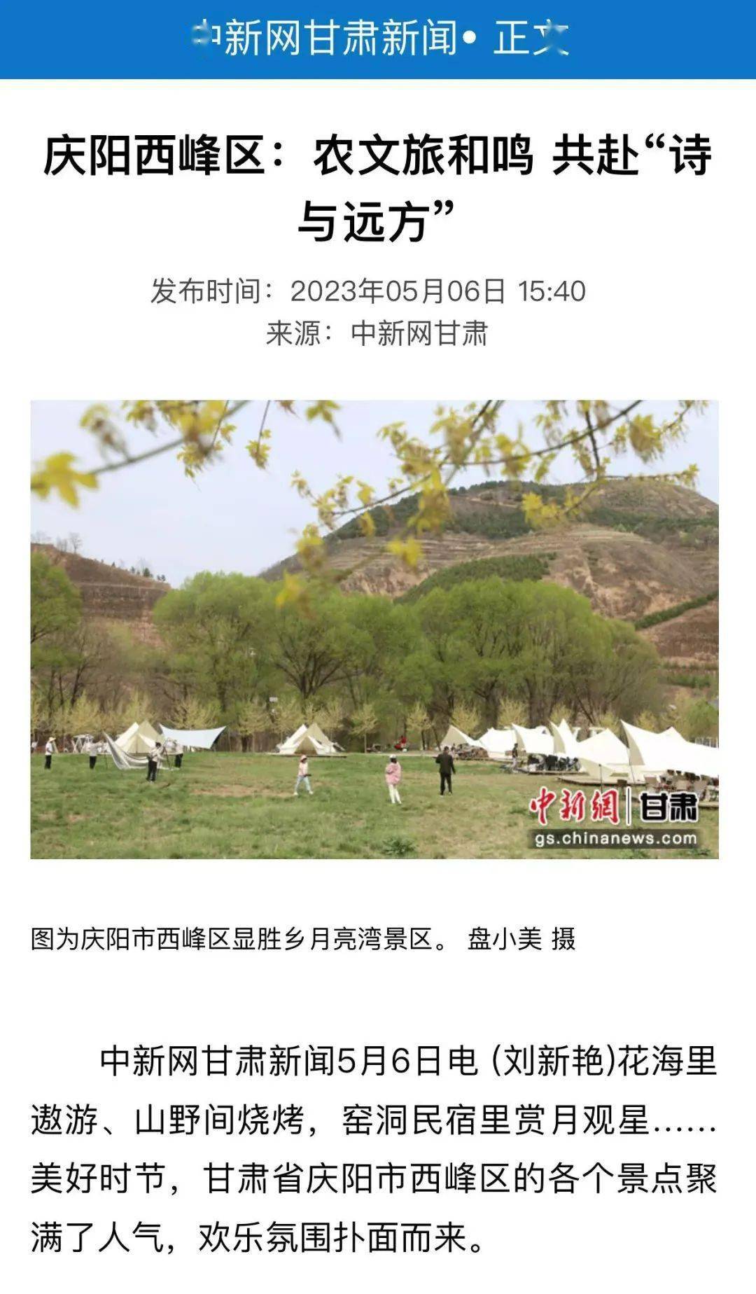 5月6日,“中国新闻网”客户端发布《庆阳西峰区:农文旅和鸣 共赴“诗与远方”》。