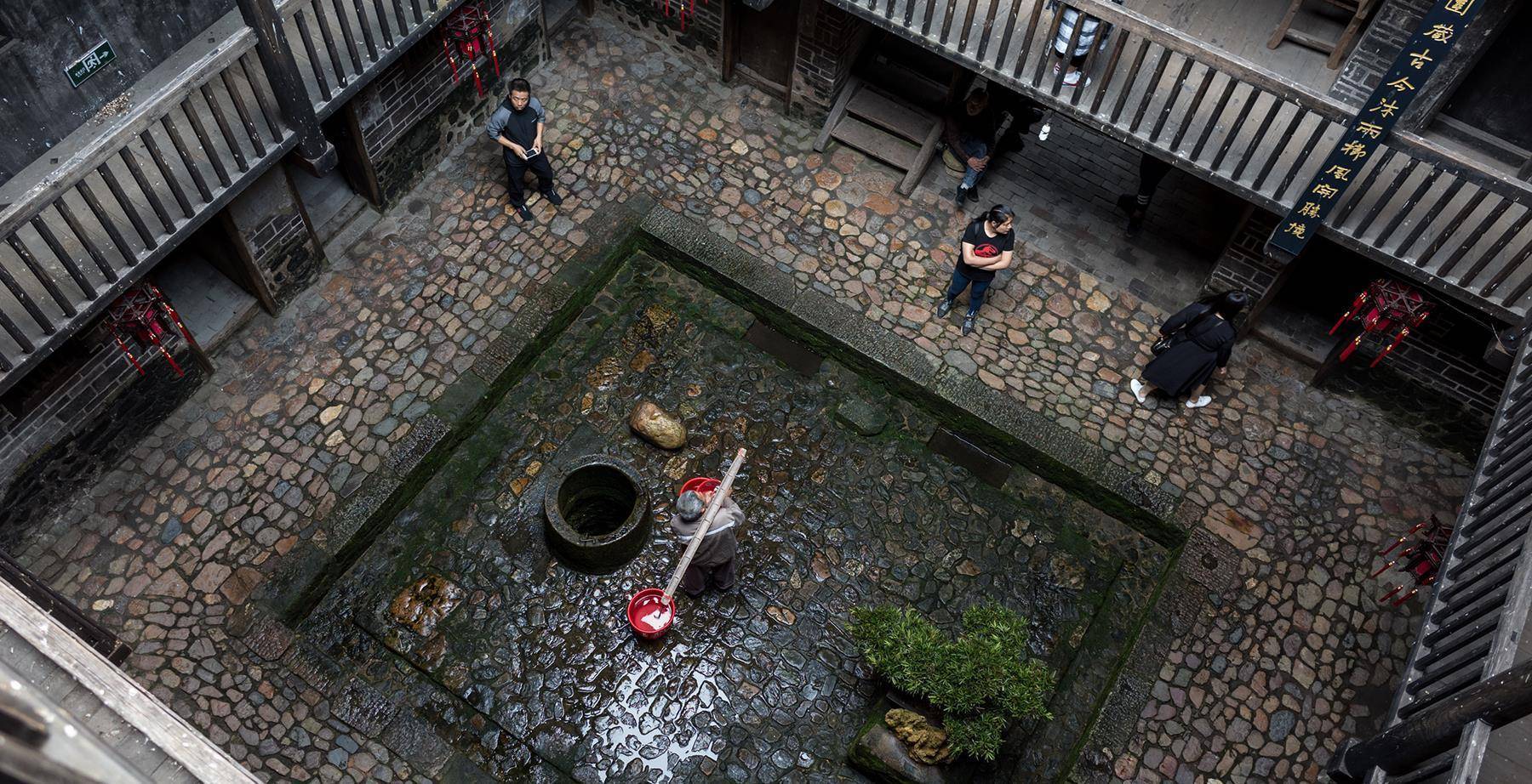 围屋的建立也充分考虑到了风水学的原理,在房屋当中还建立了一个洞穴,专门用来储存粮食,并且由于这个地方相对隐蔽,自古以来人们都是在这里面躲避战争,而且除此以外在天井的下方还建立有一口水井,不仅可以预防火灾,还为这里生活的人们充分地提供了水源,其名字也很吉祥,叫做“聚财天井”。