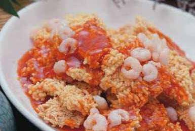 做法:①虾仁洗净后,用腌虾仁料拌匀。瘦猪肉切丝拌匀腌料,腌置片刻。冬菇用温水泡涨后,去蒂切成细丝备用。②在炒锅内烧熟六汤匙油(约八成熟即可),先炒熟猪肉丝,随即铲出放在盘中,再烧热锅中剩馀之油,倾落虾仁大火炒熟,盛在肉丝一起。③放下香菇丝在炒锅内略炒,并注入清汤煮滚,然后加入蕃茄酱、酱油、糖、醋、盐调味,待再滚煮后,即用调过水之湿太白粉勾芡,使汁粘稠,再将炒过之猪肉丝与虾仁及熟青豆等加入拦匀,最后淋下少许麻油。改用小火继续使其保暖(中太滚以免汤汁乾)。④将六杯油在另一只锅内烧得极熟之后,投入锅巴用大火膨,至颜色变黄而酥脆时捞出(油不要沥得太乾),装在深盘(或大碗内),同虾仁料(盛在另一只碗中)一起迅速端上桌面,浇下虾仁料到锅巴上,当时必呈油爆之声,即可迅速供食