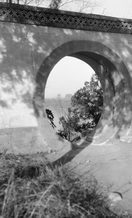 这是北京一处月亮门的景观,这种传统的建筑方式,流行于以往各朝代,是古曲园林艺术常见的一种方式。因圆如月而得名,一般用作于园林或院与院的通道。