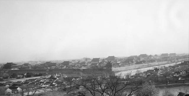 这组北京旧照,是由英国商人太古.G.沃伦在1920年和1923年到中国出差时所拍摄,此人在他父亲的公司担任合伙人,经常要到中国。这组照片,包含了外国人必拍的紫禁城以及天坛、北海、白塔和传统的街道和建筑等。这张图中是在条件不太好的情况下拍摄的紫禁城全景,紫禁城就是现在的故宫,为明清两找皇家居住办公的地方。