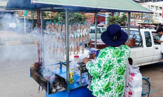 柬埔寨随处可见“嘟嘟车”,停下变小吃烧烤摊,还是主要交通工具