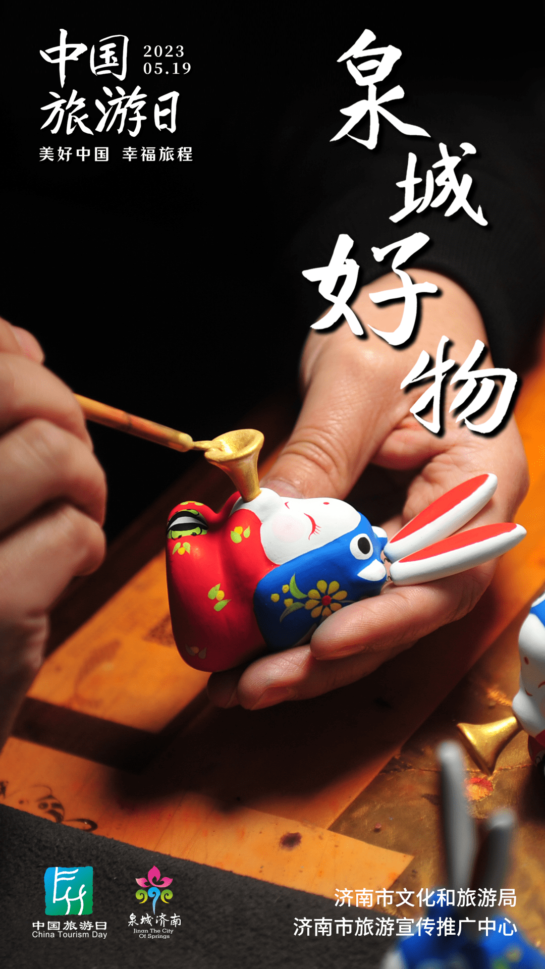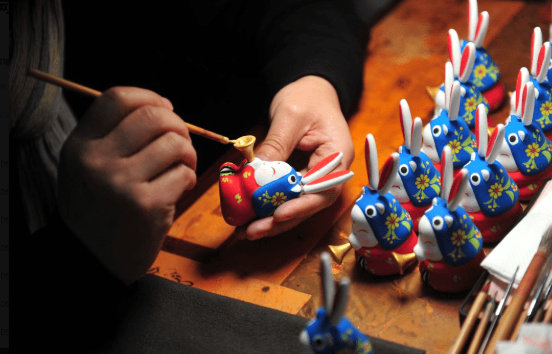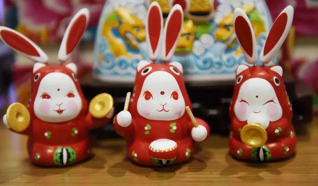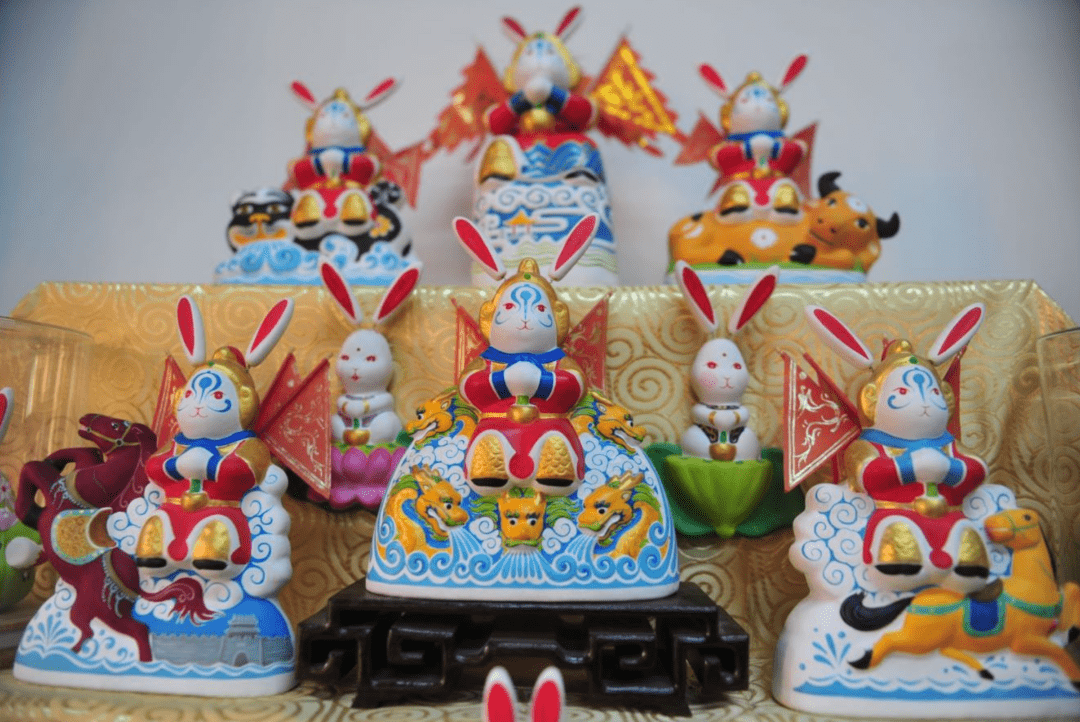 “泉城兔子王”是泉城济南一张传统而鲜活的非遗IP名片,以黄河细胶泥为原料,有十几个品种,分为不同系列,有浓墨重彩的武将兔,有精致可爱的兔宝宝,还有节庆系列的鼓乐兔宝。