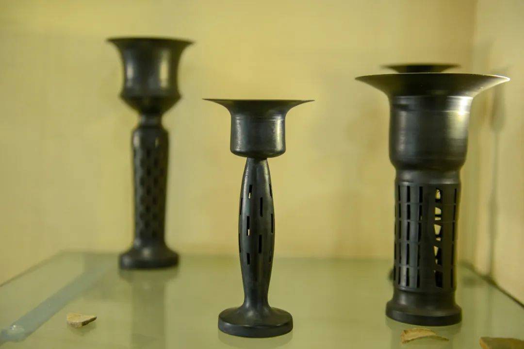 龙山黑陶具有"黑如漆、亮如镜、硬如瓷、声如磬、薄如纸"等特点,尤其黑陶中的蛋壳陶,堪称东方艺术珍品。