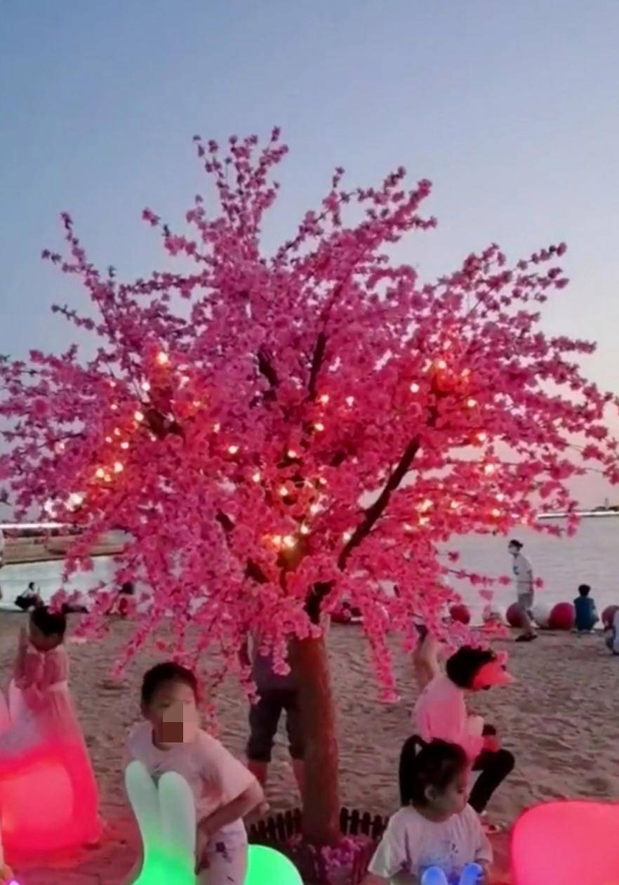 密密麻麻的的游客在海滩上玩耍,大到八十,小到三岁孩童,绝美的梅花树盛开挂满了矮小的灯光,显得如此的耀眼,如此的引人注目,当然还有就是上海虽然靠海,但是海滩可是比较少的,这处金山城海滩作为上海第一个海域4A级旅游景区,海的美景虽比不上其他地方的海景,但是同时也满足了外地游客包括本地的人想要一片海滩的愿望哦,更何况海滩上有众多游乐设施等,一旦到了炎炎的夏日,也吸引许许多多的游客前来戏水,玩耍,拍摄取景