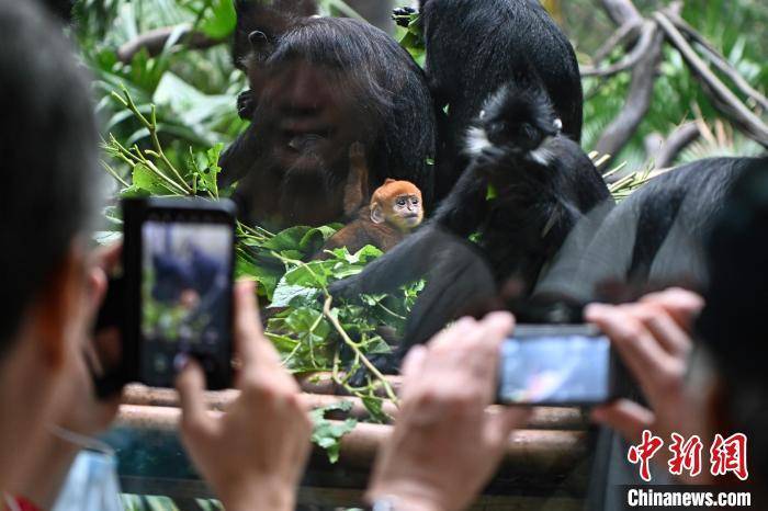 游客拍摄黑叶猴宝宝“花园”。 陈骥旻 摄