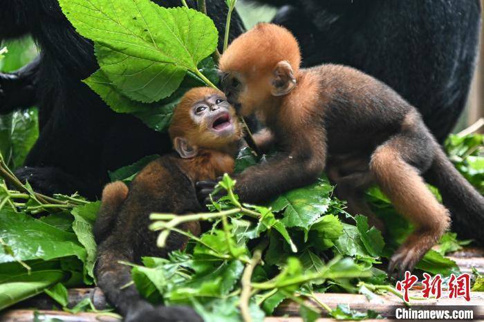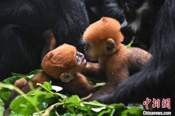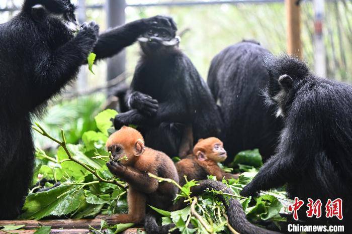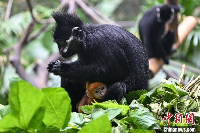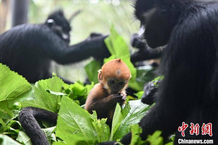 黑叶猴宝宝“想你”“花园”与家族成员一起生活。 陈骥旻 摄