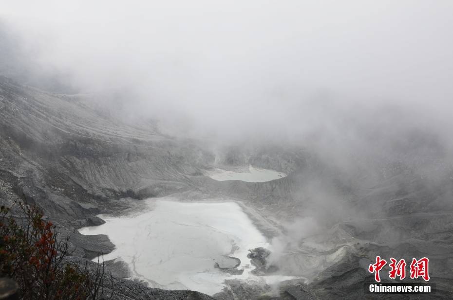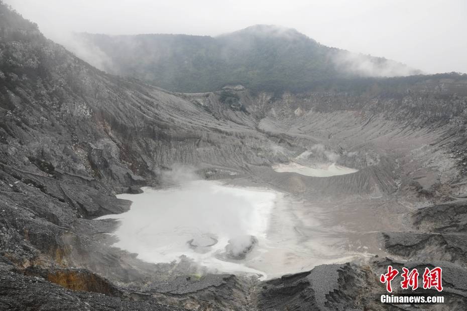 原标题:印尼万隆:覆舟火山雨后烟雾缭绕 犹如山水画