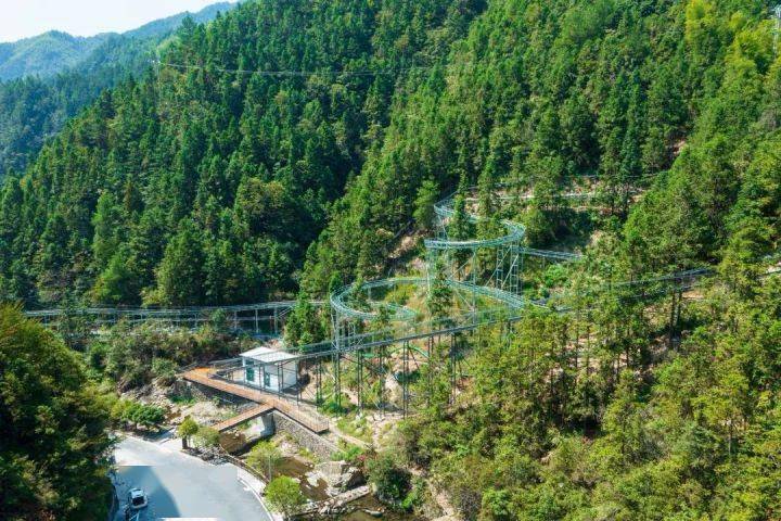 除了优美的风景,村内还有超多经验刺激的山间游乐设施。来了龙门村一定要体验龙门玻璃水滑,这是一条全长600米,上下落差80米,建于海拔约500米山上的玻璃滑道。依山势而建的滑道,蜿蜒起伏,如龙盘旋于青山间,清凉刺激。