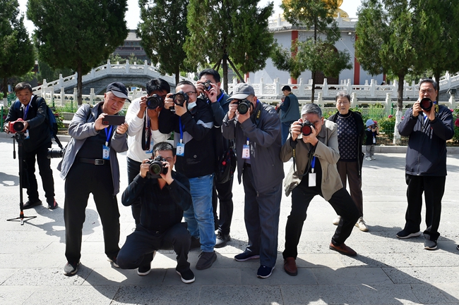 采风创作现场,盂县老年摄影家学会名誉会长崔达道,会长王更生,副会长张福锁、赵五明,秘书长高小红及老年大学摄影师齐海珠、杨府诚、张培生等人引导会员及广大摄影爱好者去发现牡丹花的特质,用心构图,斟酌光影,调整参数,从多个角度进行构图拍摄,以独特的视觉、专业的摄影技法和充满灵感的镜头记录了牡丹的华贵典雅和国色天香。