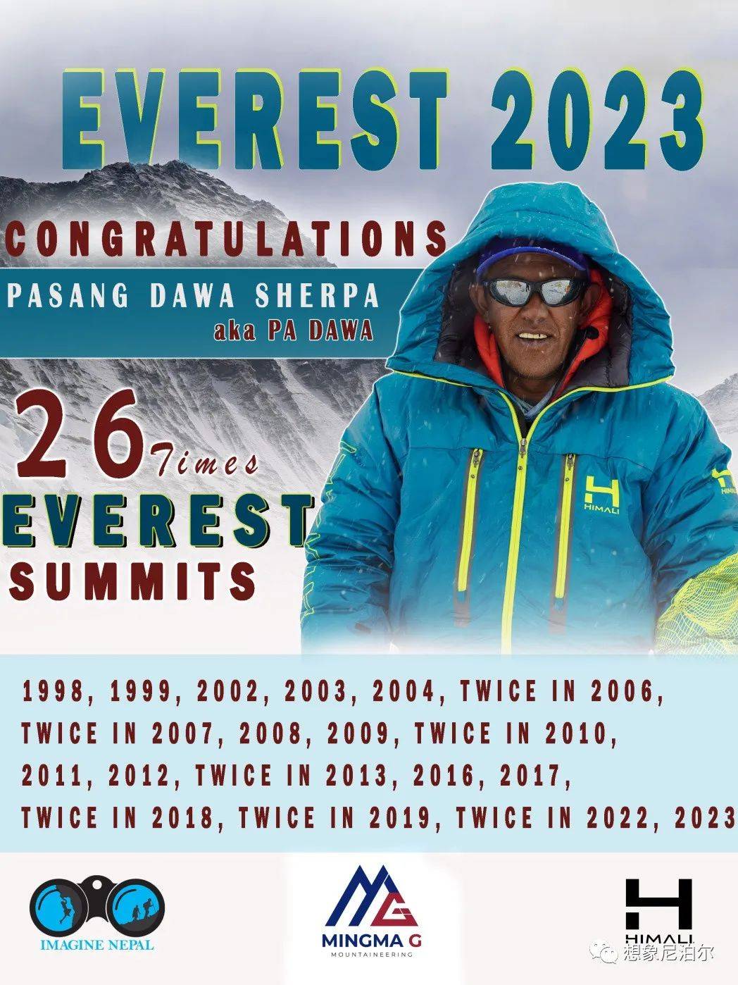 9点06分,匈牙利队员Marton Peter Price先生与Pasang Dawa Sherpa(帕·达瓦)一同登顶!这是帕·达瓦的第26次登顶,追平了卡米·丽塔·夏尔巴保持的世界最多次登顶珠峰纪录。从1998年首次登顶珠峰,帕·达瓦一直活跃在山峰世界,他的坚持和勇敢令人敬佩!