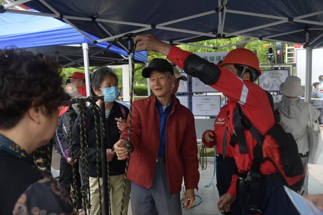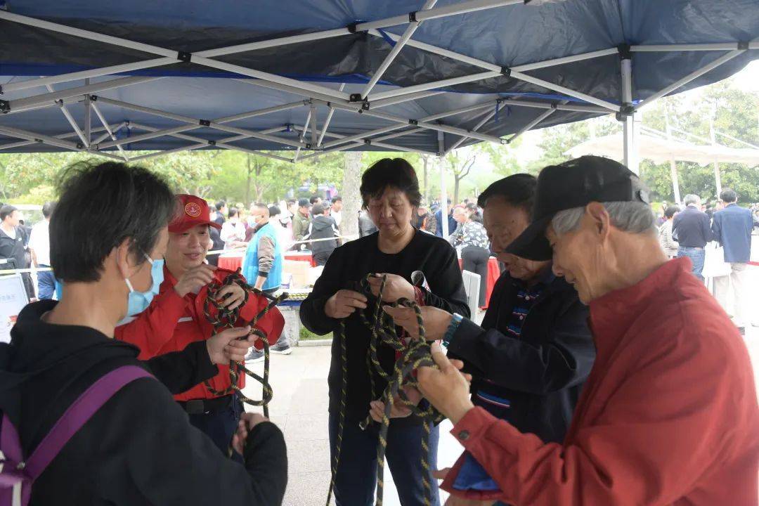 布林结、双八结、活索结、杠杆结、攀踏结……在紧急情况发生时,一个小小的结扣也许就能在关键时刻守护生命。在现场工作人员的示范指导下,不少市民上手学习不同结扣的结法。现场市民徐阿姨一边练习一边说,“工作人员介绍说,在遇到紧急情况的时候,如果你掌握这种知识的话,就可以有效脱险。以前我不知道一个绳结会有这么大的用处,今天学习了怎么打不同的结,如果遇到突发状况就能保障逃生时的安全。”