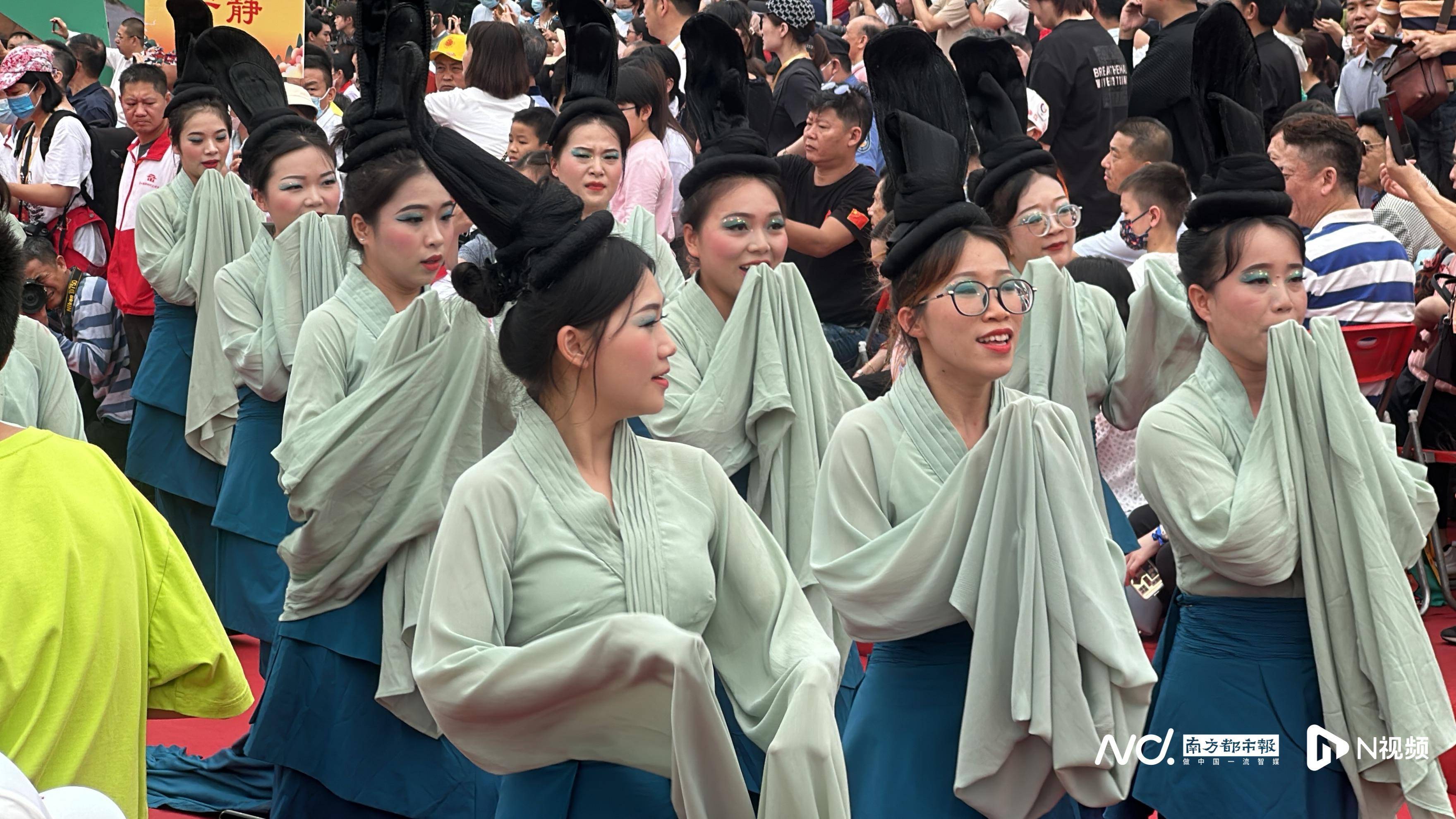 上午10时许,茶山镇东岳公园人山人海,热闹非凡。领导嘉宾和万名群众一起开启“天赐百福”后,作为茶园游会最受大家期待的一个项目——大巡游活动正式上演。