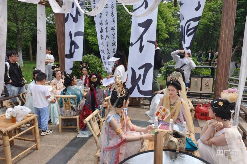 在占地超4000平方米的活动现场,主办方精心设置了“体彩成衣坊”“梳妆阁”“书画体验馆”“茶艺馆”“银装”等10余个国风体验小店,身着传统服饰的工作人员衣袂翩翩,引得市民游客争相拍照“打卡”,现场气氛十分热闹。
