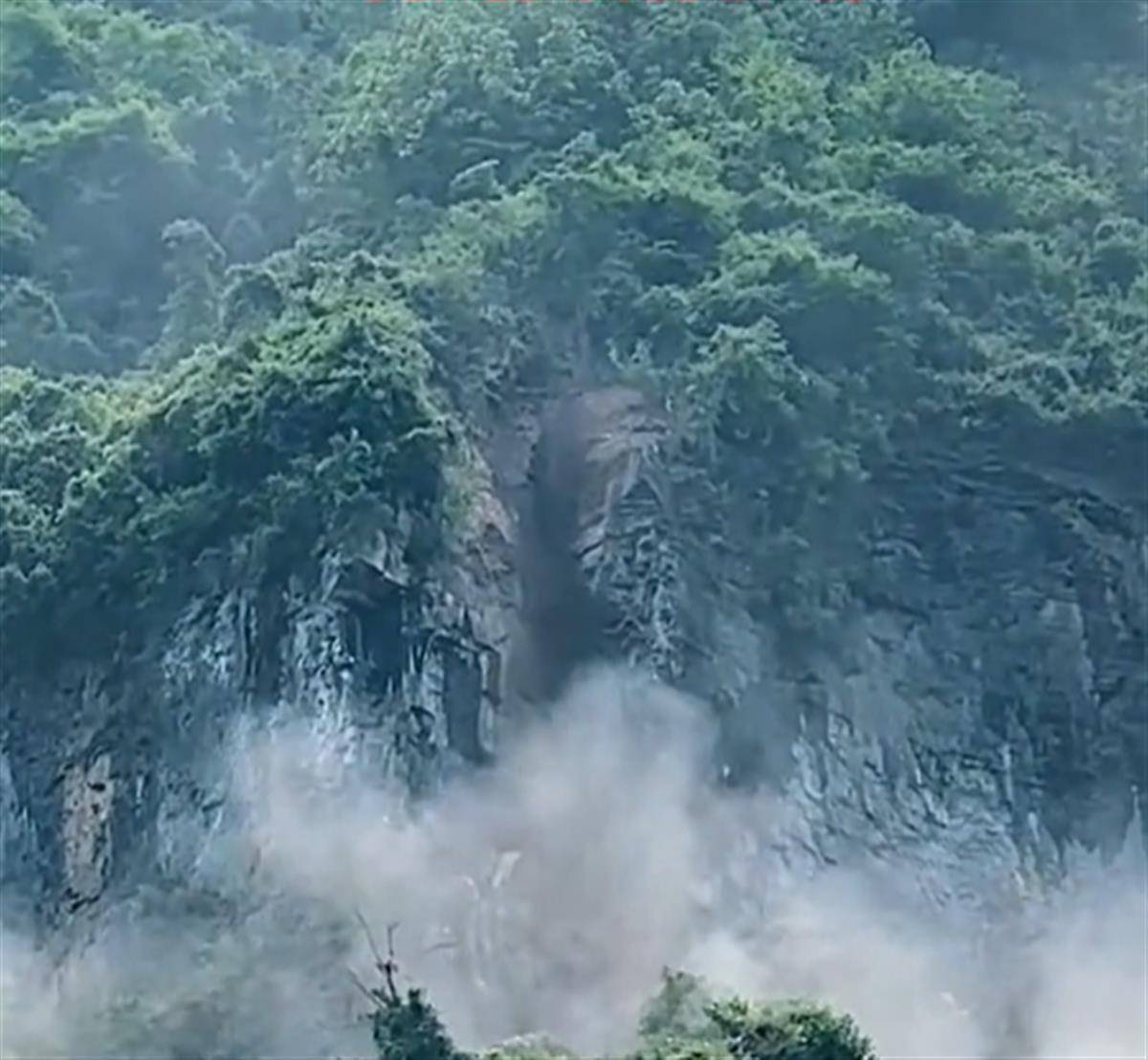 网友拍摄的视频显示,一处山体悬崖上方掉落下石块和泥土,激起大量灰尘。拍摄者称,这是5月14日张家界天门山景区出口附近发生的一幕。