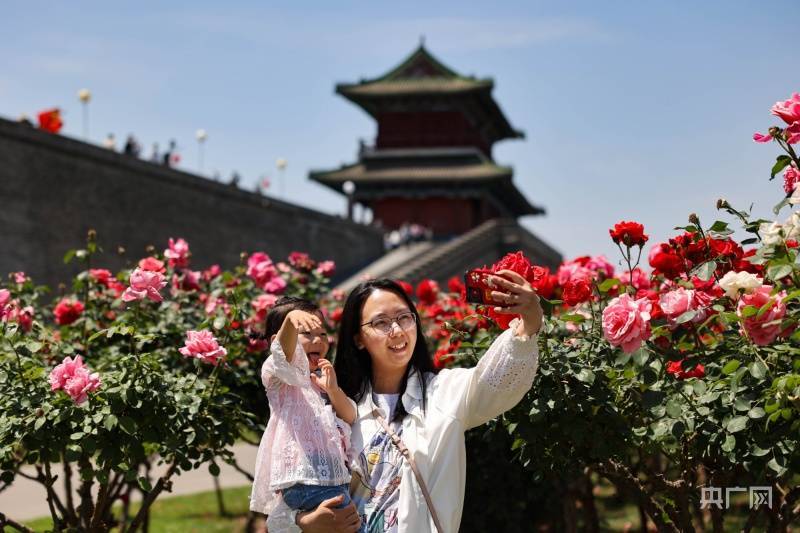 正定古城内月季花怒放,处处姹紫嫣红(央广网见习记者 王伟倩 摄)