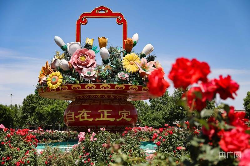 正定古城内月季花竞相绽放(央广网见习记者 王伟倩 摄)