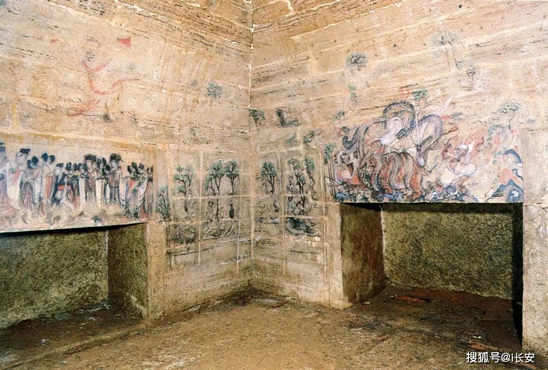 唐太子李贤墓的壁画是按照外国使者所在国的方向绘制的。其中的一幅描绘了这样一个场景:左边的三位唐朝鸿胪寺也就是外交部的官员正商议着接待远方客人的事宜,而右侧则站立着三位分别来自罗马东部、高丽和室韦的使者。罗马东部,在中国史书中称“大秦国”,它分明在西方,大约是因为这位罗马东部使者是从海路来华的,所以和东方国家的高丽、室书使者一起被画在了墓室的东壁。