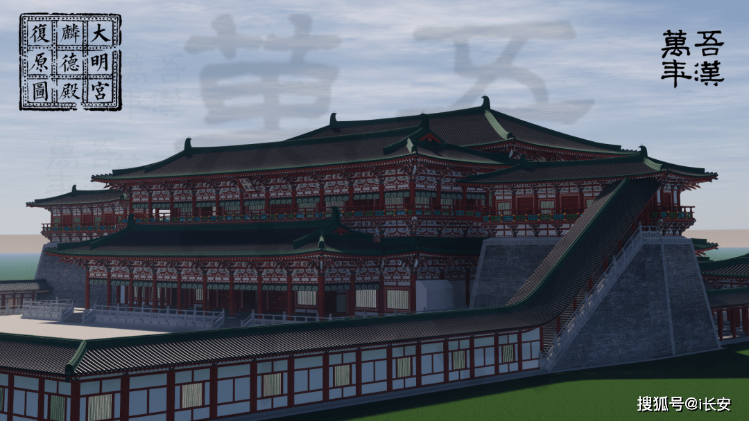 在唐长安大明宫内,规模最大的宫殿是麟德殿。麟德殿建于公元664年一665年间,毁于公元886年,使用和存在了大约220年之久。这座宫殿位于皇宫区西北部,大明宫西正门——右银台门内北侧,由三殿、两楼、二亭组成,是一个三殿串联二层楼阁的组合建筑。
