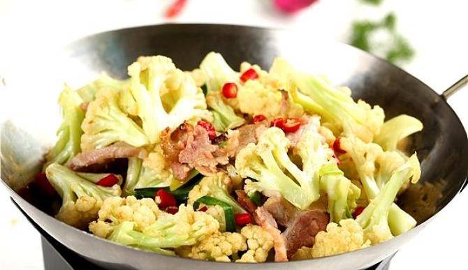 眼看着四月份快过一半了,天气也越来越热,这个时候很容易积食,消化不好。小编在这里为大家推荐一款有助于消化的菜品:干锅花菜。它是湖南的一道传统名菜,归属于湘菜菜谱,主要制作原材料是花菜和五花肉,炒完之后放在干锅里,锅下面用火加热,就能品尝到口感脆且焦香四溢的干锅花菜。