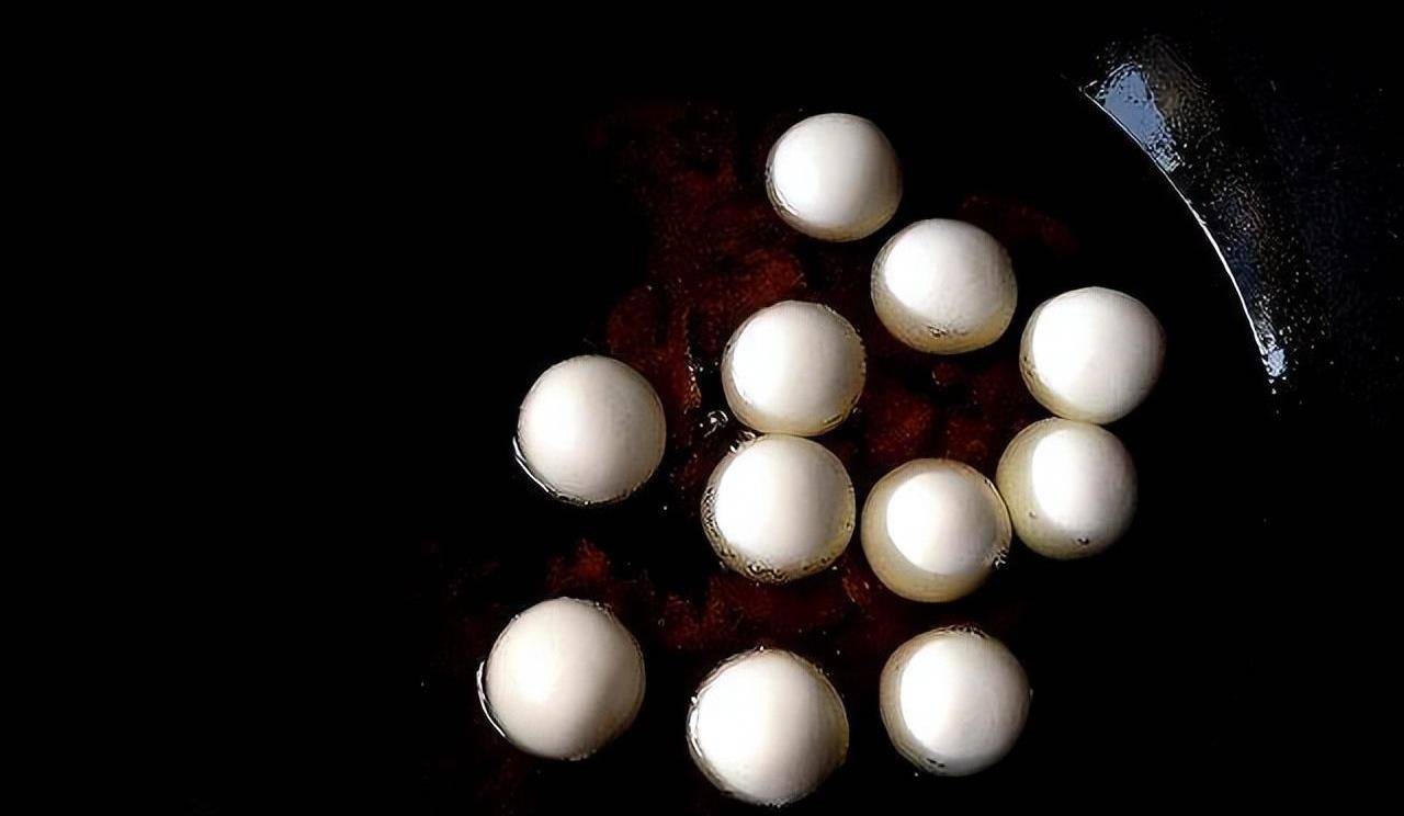 然后就等油温稍降下来,这时候红糖会沉到油下面,这时候就可以放入揉好的圆球,都下去后,开小火在慢慢的炸,期间用铲子不断搅拌下,以免粘在一起。