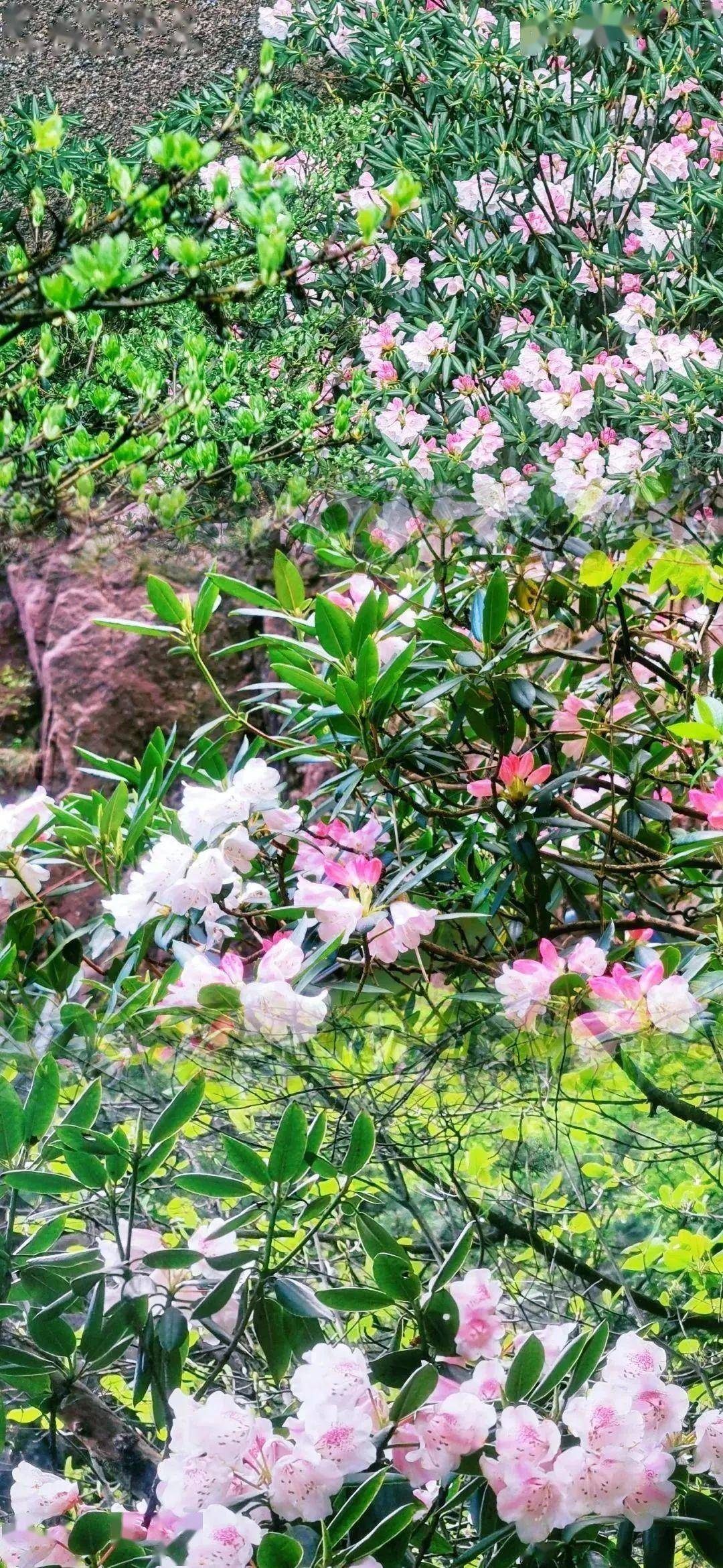 谷壑中,游道边,杜鹃花影绰绰一株株,一簇簇似虹似霞,如绸如锦