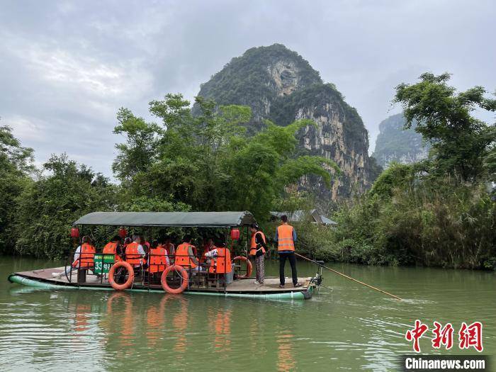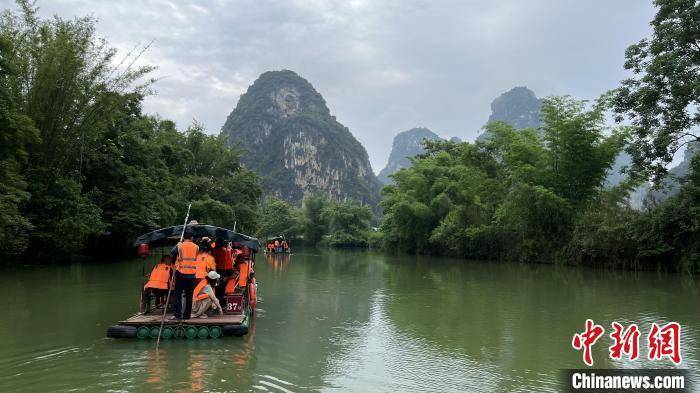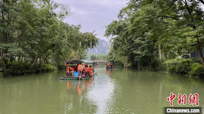 游客在明仕河乘坐竹筏游览两岸风光。 张文茜 摄