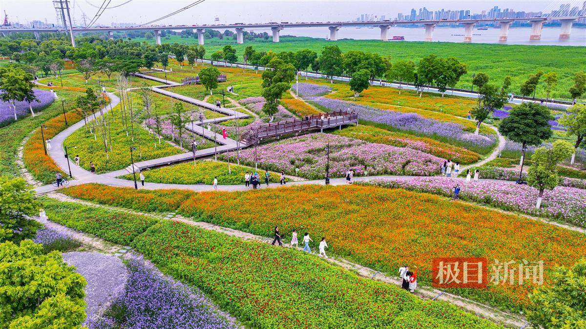 在暮春初夏的临界点,百日草、波斯菊、柳叶马鞭草等联袂群演,热情迎夏,掀起震撼效应,18片花田花海炫彩大武汉!