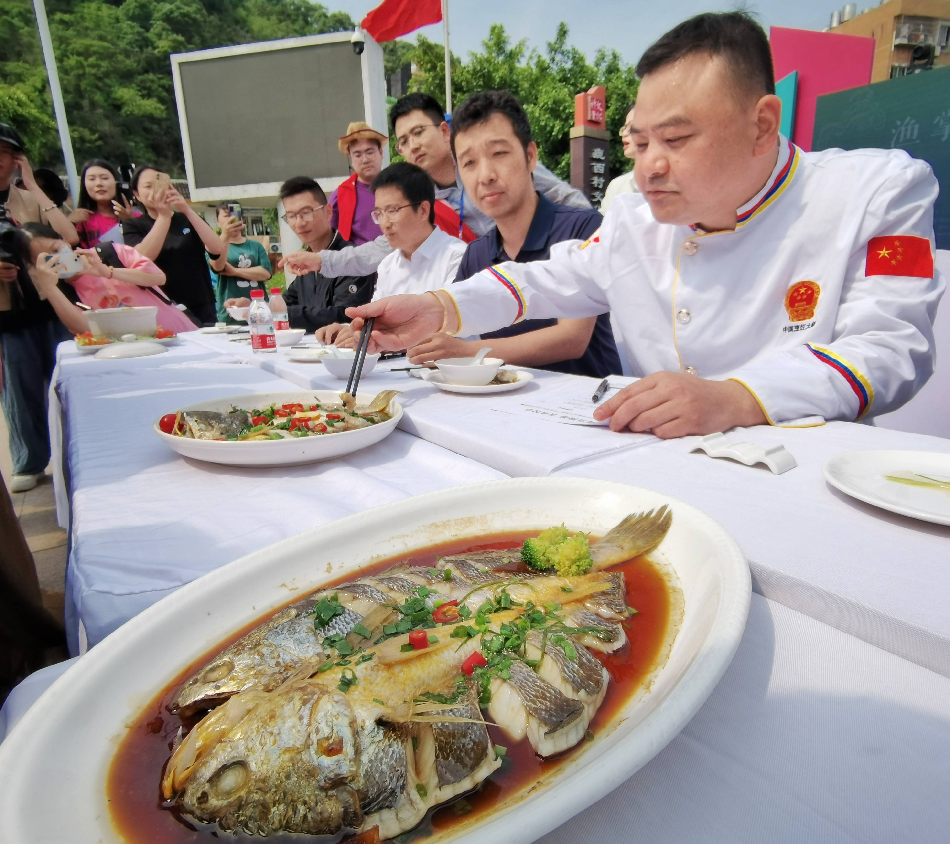 下午1时25分,启动仪式正式开始。在简短的议程之后,渔掌门厨艺争霸赛正式开始,满仓而归、丰收、富贵黄金鱼、黄鱼开屏……15位渔嫂厨娘,15道大黄鱼美食菜品,让评委和乡亲们啧啧称赞。“我们希望通过这样独具‘渔’味的技能比拼活动,在展现渔乡独特风情的同时,推动海岛群众提升就业增收技能。”该乡相关负责人说道。