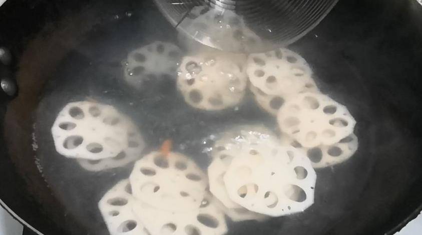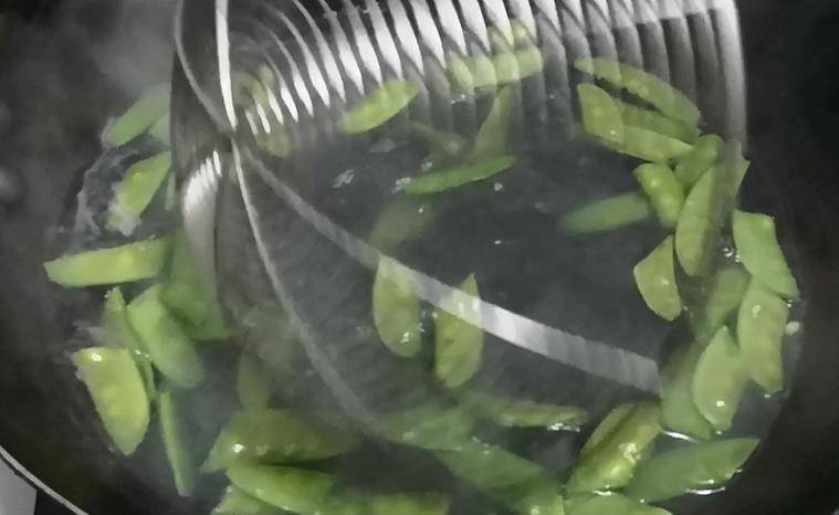 焯水后的藕片放入冷水中,藕片不会变色严重,而且口感清脆,最后下锅荷兰豆,焯水1分钟,然后捞出