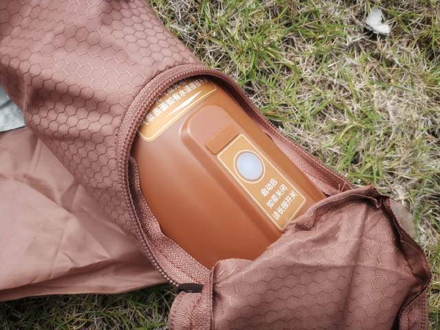 拧开外盖,内里的结构如下,在这时候轻轻一按,单人垫1分钟完成充气。3800毫安的电池容量,可以连续使用20次。省事。