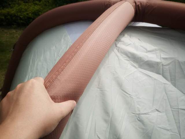 约1分半钟的时候按压气柱,可以看到是非常挺立的。其支撑效果也可以说是比常规帐篷的帐杆还更坚挺。