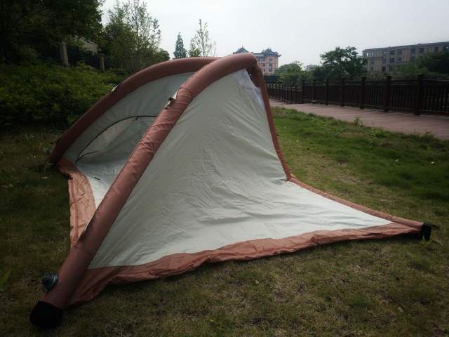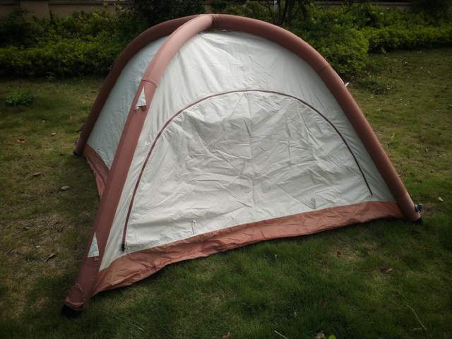常规的帐篷需要帐杆支棱,操作不便还有折叠帐杆的意外。充气帐篷就没有这些烦恼了。一键操作后看着帐篷迅速的挺立了起来。