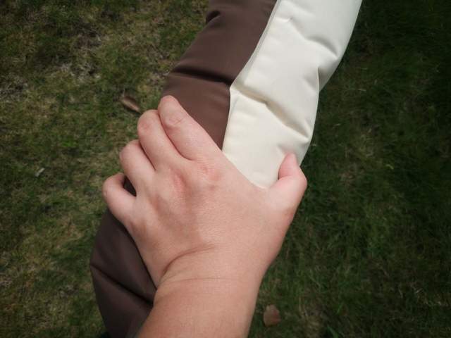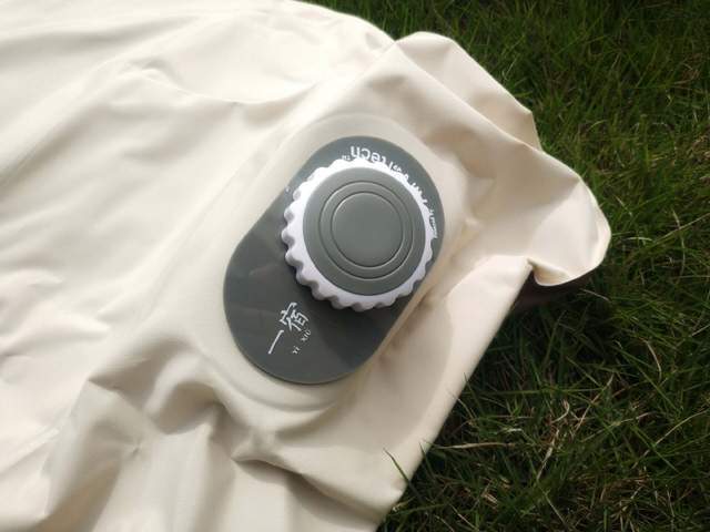 充气前不要忘记出气空要闭合。通过下图可以了解到垫子上层是米黄色的,下层是棕色的。在材料上下层都是耐磨刮的。颜色的差异方便我们辨识上下层,棕色作为下层耐脏,好打理。