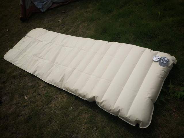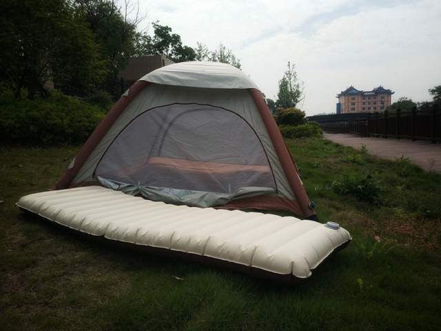 为了舒适性,我们最好在配置一个睡垫(防潮垫)。考虑配孩子小玩一会,也考虑后续带到办公室做午休的垫子,我入手了单人款的。如有需要双人款也是不错的选择。而上面的帐篷可以同时放入一个单人垫和双人垫。可以说充气帐篷的内里空间还是很大的。