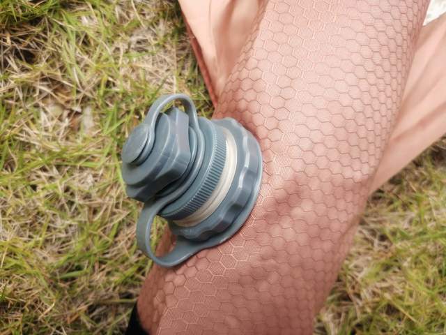 闭合充气口,开始充气。垫子迅速膨胀、鼓起。过程不用再动手操作,很省力。