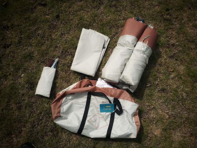 看着附近嫩绿的草皮,孩子说要去玩耍,那就再入手一套一宿的装备咯。也就是这次分享的充气帐篷和充气睡垫。