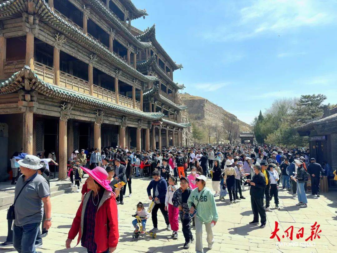 刚刚过去的“五一”假期,云冈大景区呈现久违的“井喷”之势,游客量突破18万人,比2019年同期增长56%,外省游客占80%左右。仅4月30日一天,就接待游客52664人,是有史以来景区单日接待游客最多的一天。云冈石窟独特的历史文化底蕴、优美的旅游环境,让游客尽情享受惬意的休闲时光。