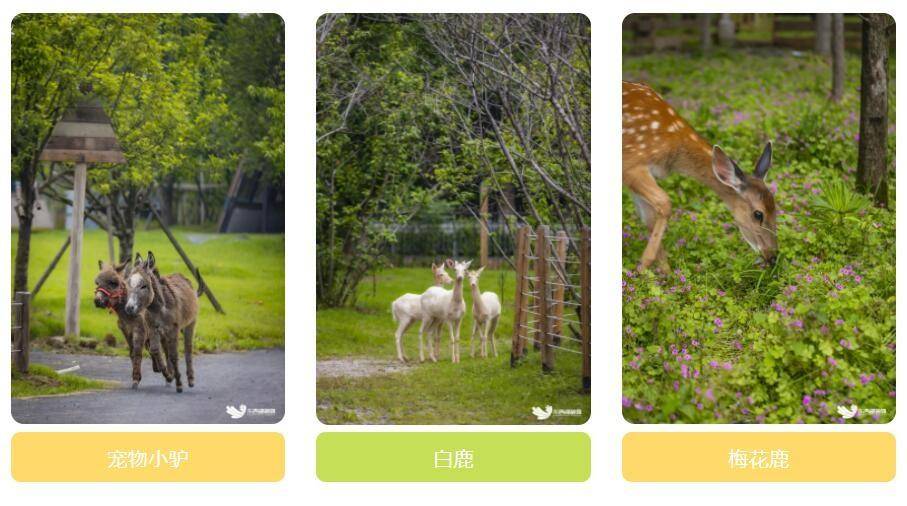 梅花鹿、宠物小驴、萨福克羊、迷你羊、杜泊羊、黑天鹅、狮头鹅、婆罗门鸡、柯尔鸭、赤麻鸭、小香猪、孔雀……全是孩子们喜爱的温顺动物。