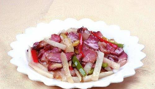 山药炒腊肉:腊肉是中国腌肉的一种,主要流行于四川、湖南和广东一带,腊肉以其在腊月制作而闻名,是过年必备的食品。你感觉这道菜怎么样呢?可以分享给同事们。