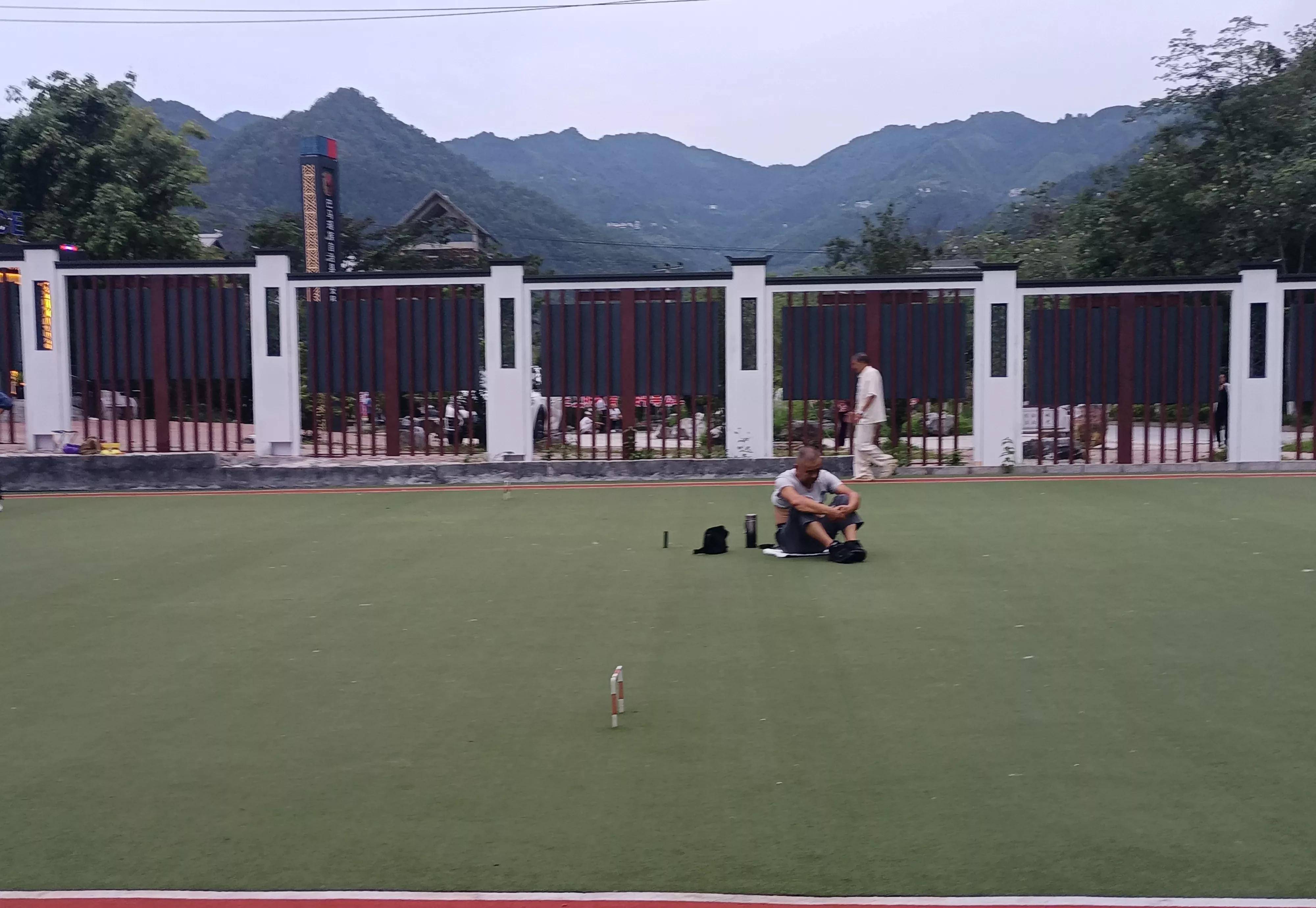 再往前,是一片人造的绿色草地。草地边缘有红色的道道,呈一个大大的四方形。经常看到有人在白圈里爬行。前不久,老洪说,这个爬行的动作可以练肾。我一听“练肾”二字,顿时来劲,也就开始爬行了。连续几天来这里都爬一下,一次能爬完一整圈也就累了。