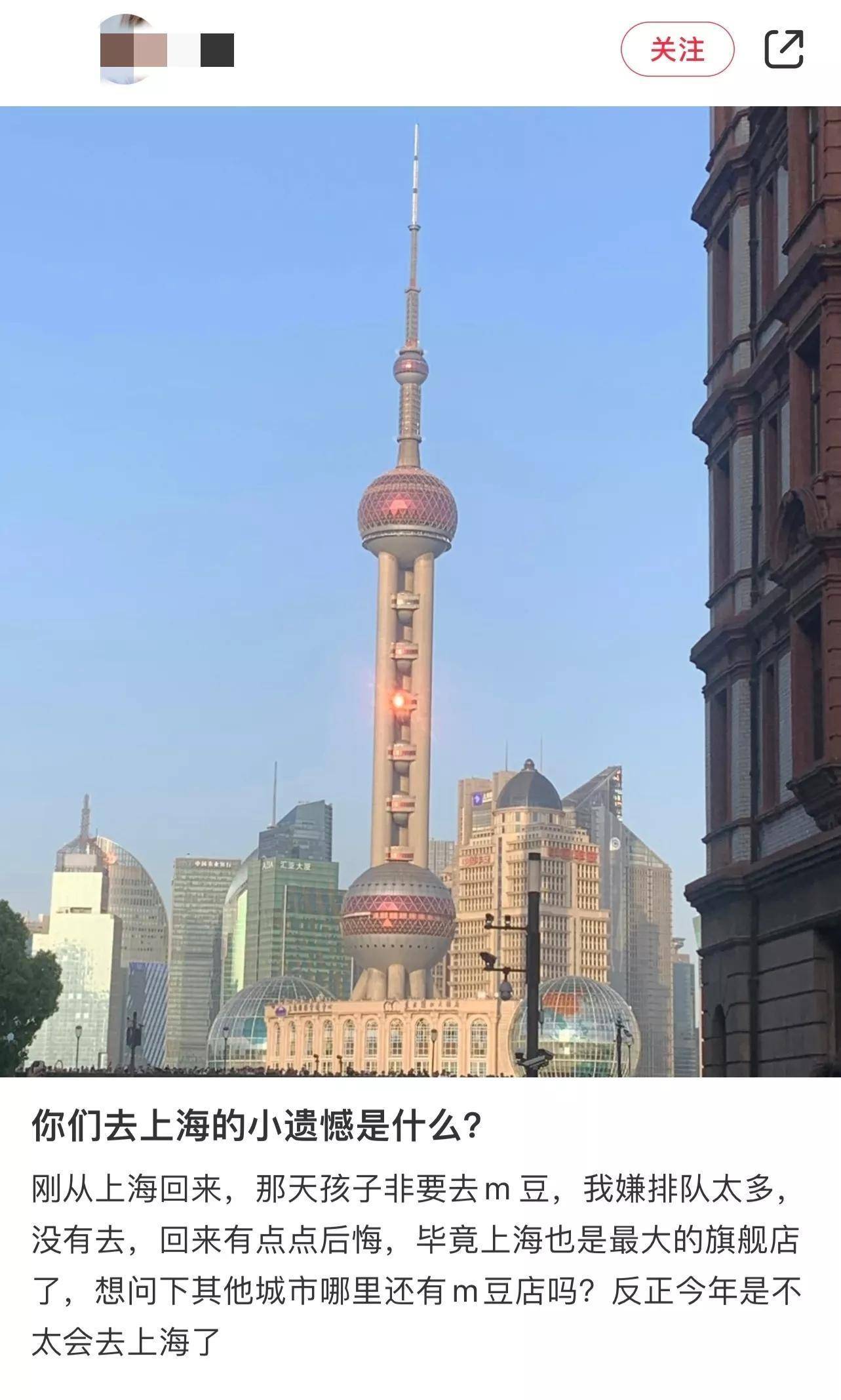 所以,女子打算今年不会再来上海游玩了,想询问网友们其他哪个城市哪里还有m豆店。