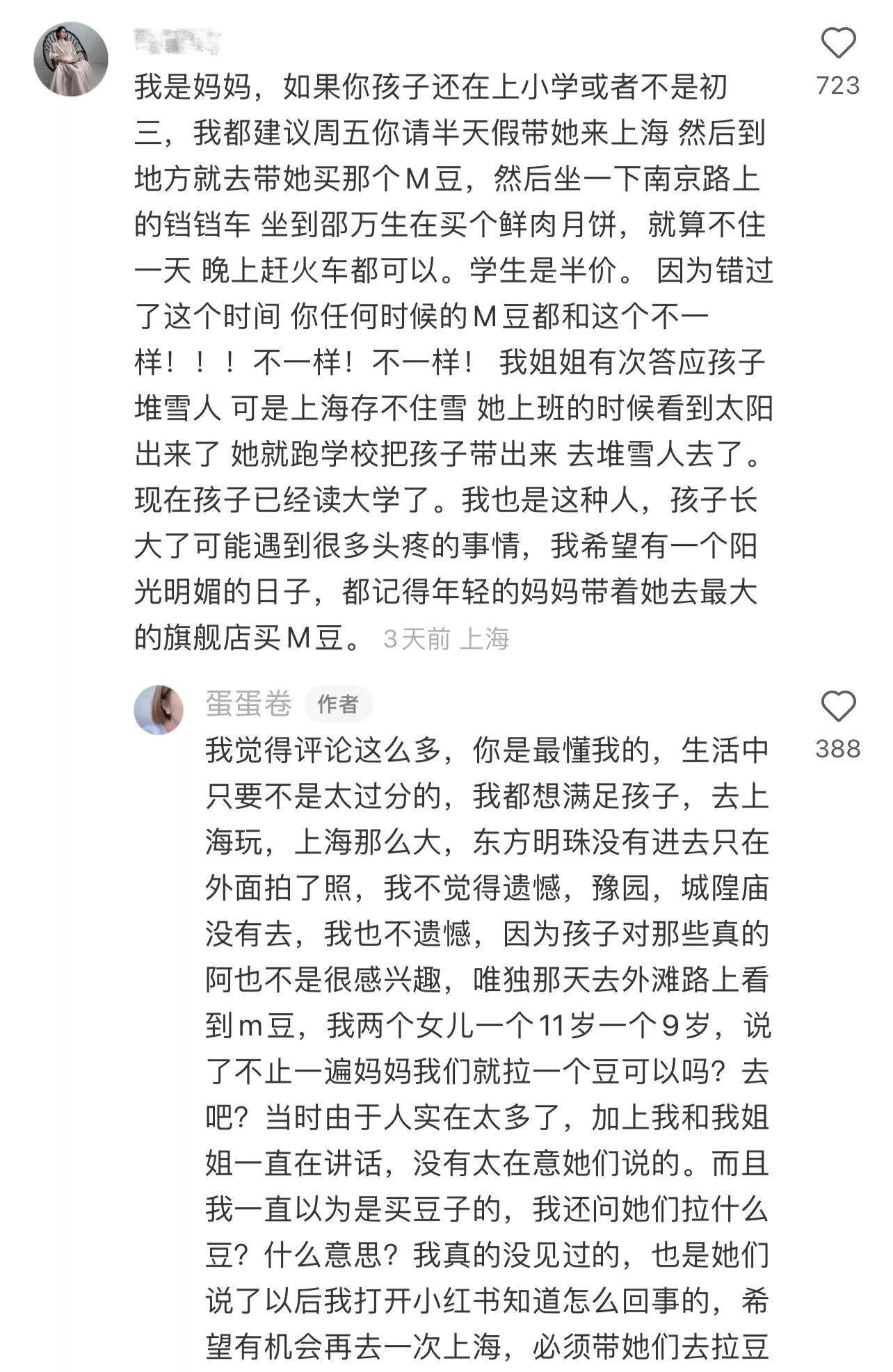 “我是妈妈,如果你孩子还在上小学或者不是初三,我都建议周五你请半天假带她来上海,然后到地方就去带她买那个M豆......因为错过了这个时间你任何时候的M豆都和这个不一样! ! !