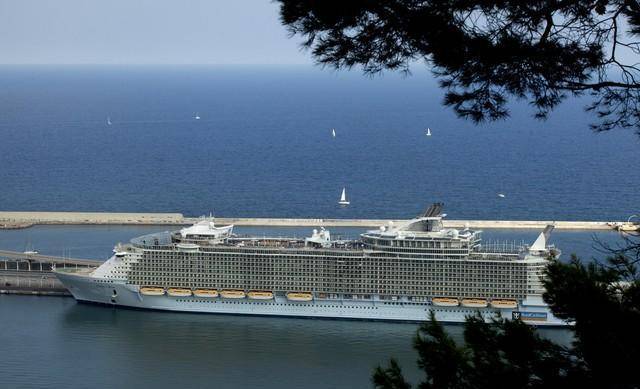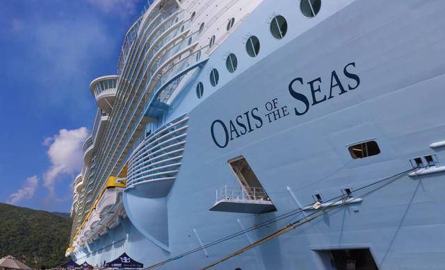 “海洋绿洲号”(Oasis of the Seas)是目前世界上最大、最豪华、最先进的游轮之一,由美国皇家加勒比国际游轮公司于2009年建造。该游轮总长361.8米,宽度66米,高度72米,重量达到了225,282吨,可同时容纳6300名乘客和2100名机组人员。